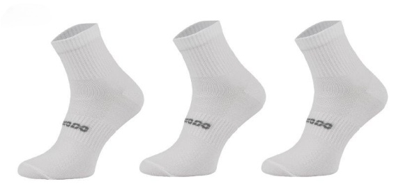 • Trzy pary skarpet w rozmiarze 43-46, kolor biały — idealne na co dzień lub do aktywności sportowej.