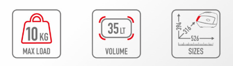 • Pojemność 35 l – wystarcza na przechowanie np. jednego kasku integralnego w każdym kufrze.