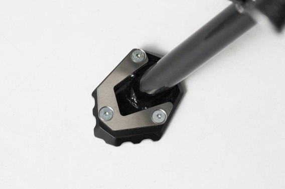Atrakcyjna nakładka na nóżkę boczną, która przez zwiększenie powierzchni styku z gruntem, zapobiega zapadaniu się motocykla na nierównym jak i miękkim podłożu. Wykonana jest z wytrzymałego stopu aluminium anodowanego na kolor srebrny lub czarny. Kształt jest ściśle opracowany pod każdy motocykl, a precyzję zapewniają maszyny CNC. Dodatkowo górna blaszka wykonana jest ze stali nierdzewnej co sprawia, iż produkt jest bardzo wytrzymały niezależnie od warunków w których jest używany. Rowkowana górna krawędź, pomaga kierowcy łatwo odchylić nóżkę boczną nawet podczas noszenia ciężkich butów motocyklowych.Cechy: