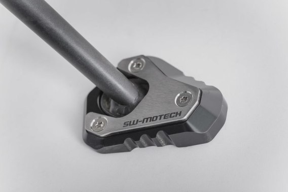Atrakcyjna nakładka na nóżkę boczną, która przez zwiększenie powierzchni styku z gruntem, zapobiega zapadaniu się motocykla na nierównym jak i miękkim podłożu. Wykonana jest z wytrzymałego stopu aluminium anodowanego na kolor srebrny lub czarny. Kształt jest ściśle opracowany pod każdy motocykl, a precyzję zapewniają maszyny CNC. Dodatkowo górna blaszka wykonana jest ze stali nierdzewnej co sprawia, iż produkt jest bardzo wytrzymały niezależnie od warunków w których jest używany. Rowkowana górna krawędź, pomaga kierowcy łatwo odchylić nóżkę boczną nawet podczas noszenia ciężkich butów motocyklowych.Cechy: