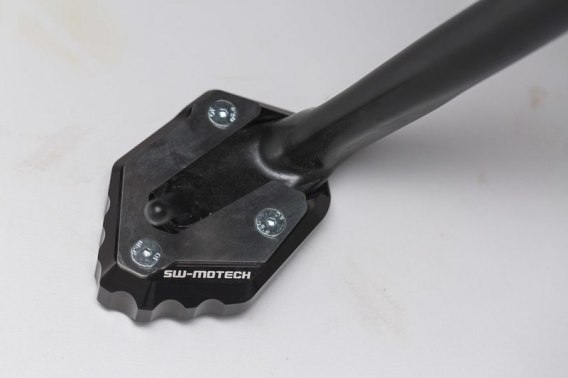 Atrakcyjna nakładka na nóżkę boczną, która przez zwiększenie powierzchni styku z gruntem, zapobiega zapadaniu się motocykla na nierównym jak i miękkim podłożu. Wykonana jest z wytrzymałego stopu aluminium anodowanego na kolor srebrny lub czarny. Kształt jest ściśle opracowany pod każdy motocykl, a precyzję zapewniają maszyny CNC. Dodatkowo górna blaszka wykonana jest ze stali nierdzewnej co sprawia, iż produkt jest bardzo wytrzymały niezależnie od warunków w których jest używany. Rowkowana górna krawędź, pomaga kierowcy łatwo odchylić nóżkę boczną nawet podczas noszenia ciężkich butów motocyklowych.Cechy: