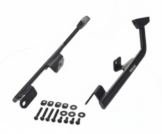 W zestawie znajdują się elementy montażowe, które pozwalają zamontować stelaż na motocyklu.