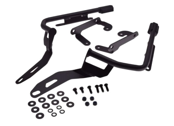 W zestawie znajdują się elementy montażowe, które pozwalają zamontować stelaże na motocyklu.
