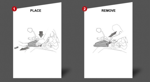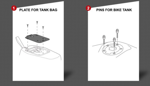 UWAGA: Do montażu potrzebny jest dedykowany pod konkretny model motocykla zestaw pin system (dostępny osobno)
